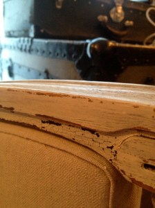 The arms and legs were given a nice treatment of Miss Mustard Seed”s milk paint in Linen and a coat of the Miss Mustard Seed’s Antiquing Wax.  I loooove this stuff!!! It was my first experience with milk paint and I love the way it cracked and chipped all on it’s own.