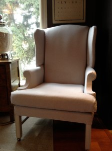 Anyhoo…  I have since bought another wingback chair to replace it (future post!!!) and I think I will do the same treatment to it….this one has prettier legs, french legs to be exact!  She will be lovely!  I haven’t had time yet but I intend to start her in the near future.