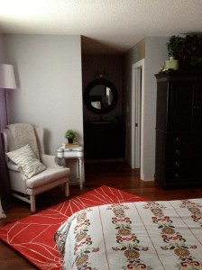 I know… there are “leg” prints on the seat cushion…My children thought they’d try out the chair….did I  mention there are five of them????   Yah…first and last time sitting on a light fabric chair!!!  LOL! :0)  I am not a crazy mom… but… when you’ve worked hard on something like this you really don’t want “sticky” people sitting on it..am I right??  :0)