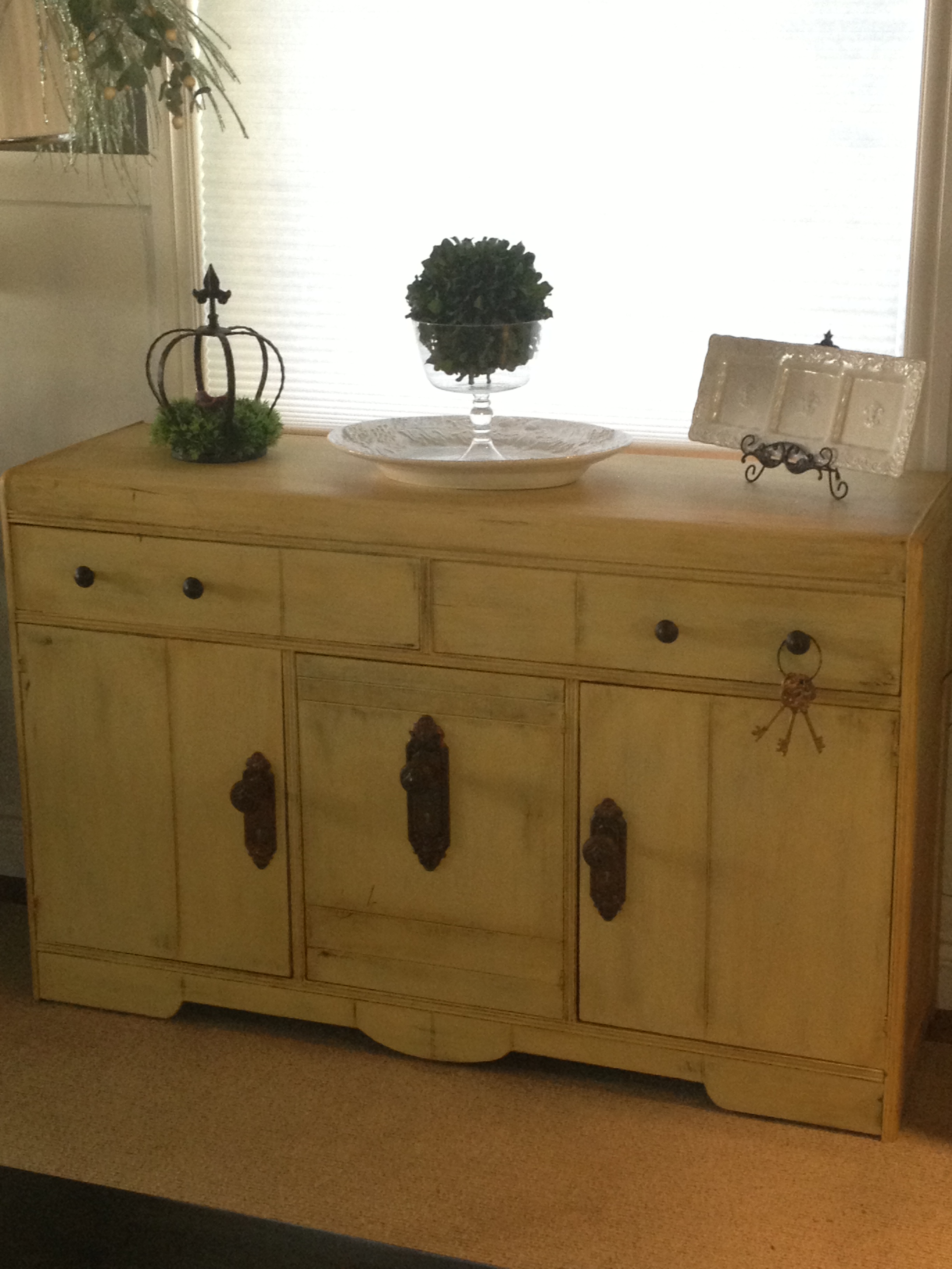 A while ago I had posted about an antique sideboard that I had given a makeover to but the pictures on the post were somehow erased so I thought I would re post with the pictures this time…Enjoy…
