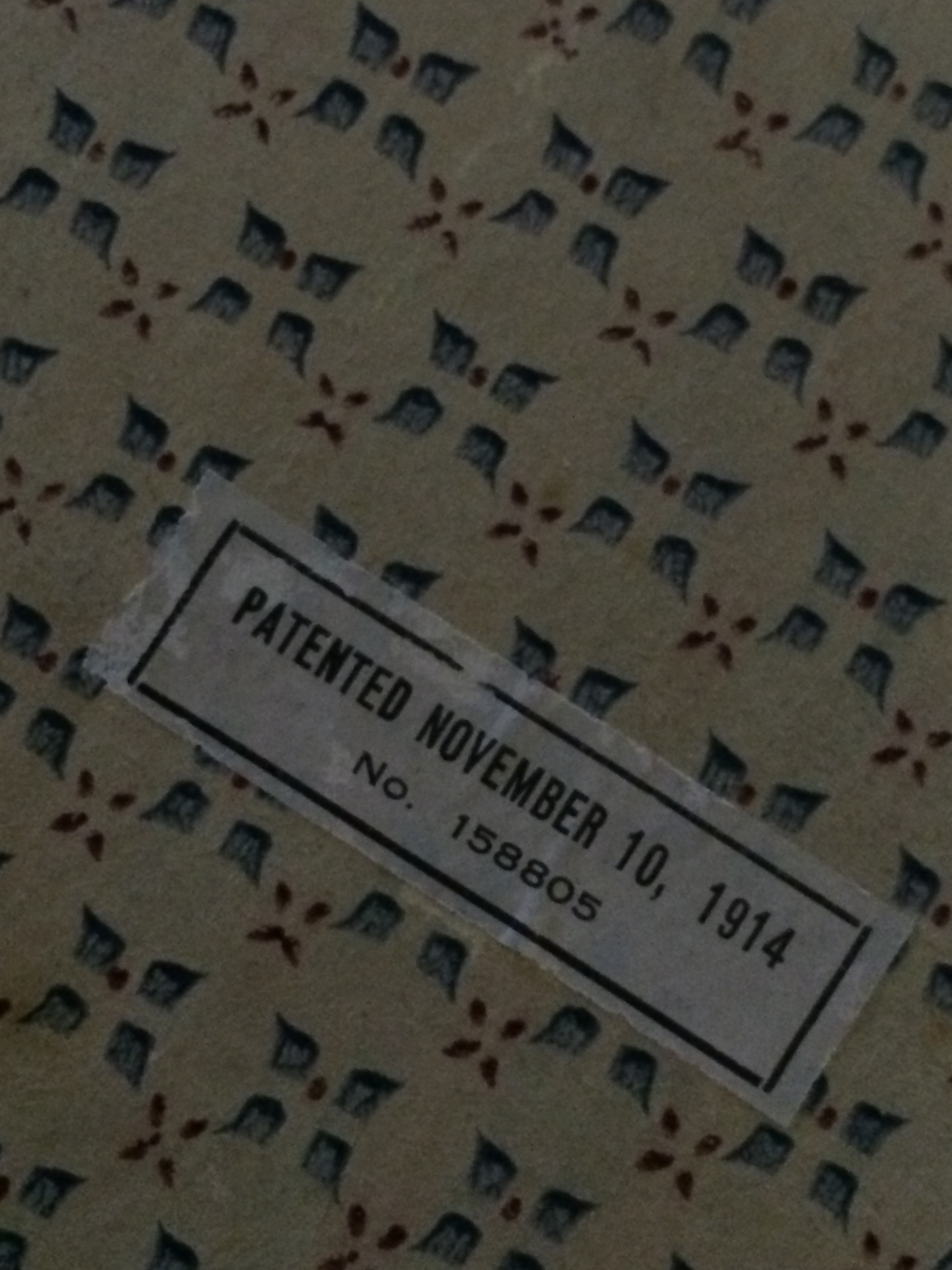 It is in lovely shape both inside and out! It has a removable shelf inside with the original label telling the date….November 1914! Wow! Even the paper lining is in beautiful condition and it’s the first trunk that I have come across that doesn’t have a terrible smell inside!