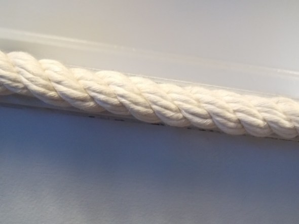 These beds are actually bunk beds that we have just as twin beds, the ceiling is high enough but there is a pony wall around 2 sides of the room and I think it just looks awkward with the ledge….I hate the ledge!!! It is nothing more than a junk and dust collector. When I painted the room I also painted the ledge and instead of the outdated trim on it I used some rope from the local hardware store to trim up the raw edges. This gave it a bit of a masculine and nautical feel, and it was cheap to do.