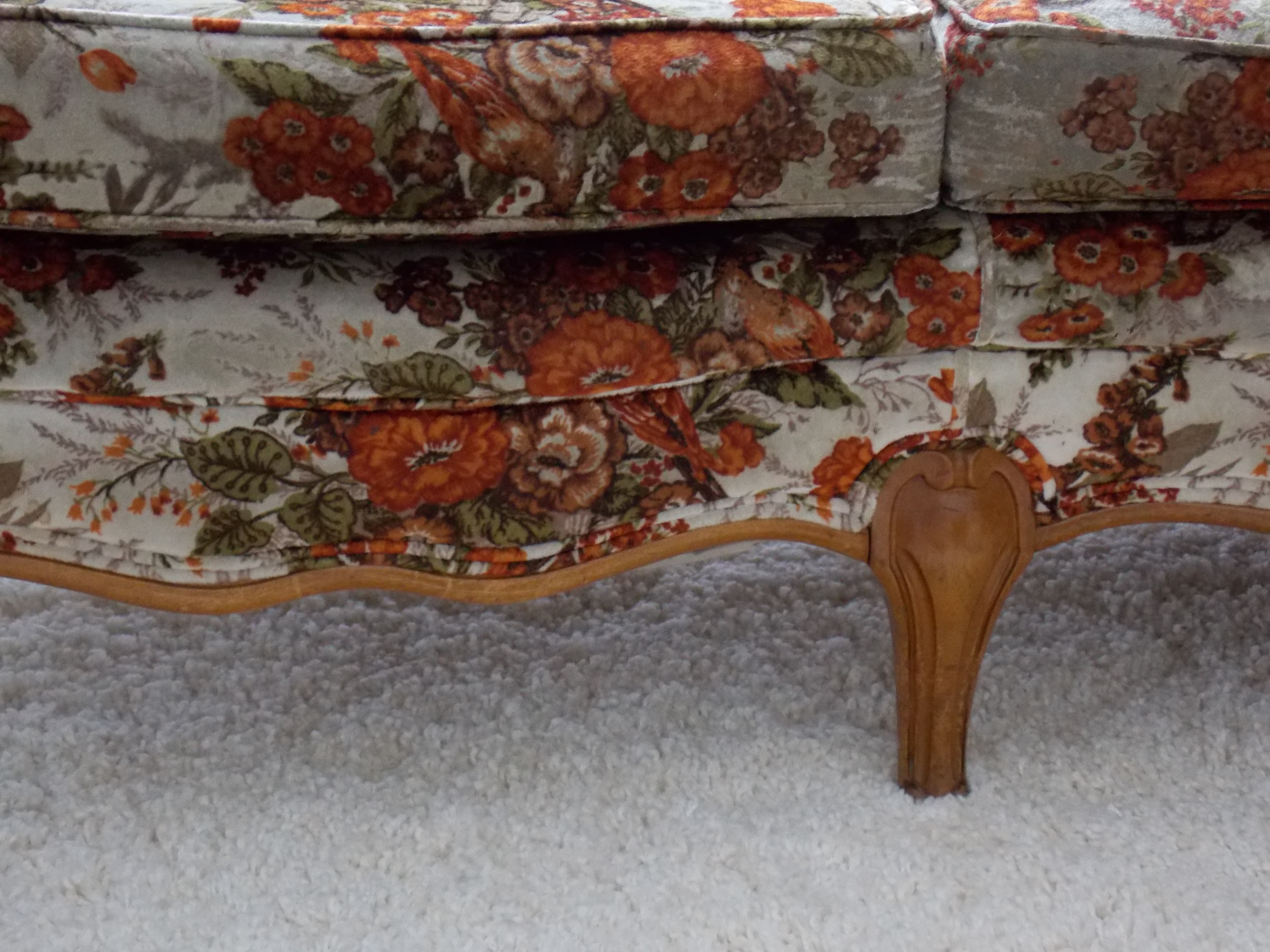 ORANGE!!!!????? REALLY???  WHO in the world thought that this fabric belonged on a pretty french style sofa??????