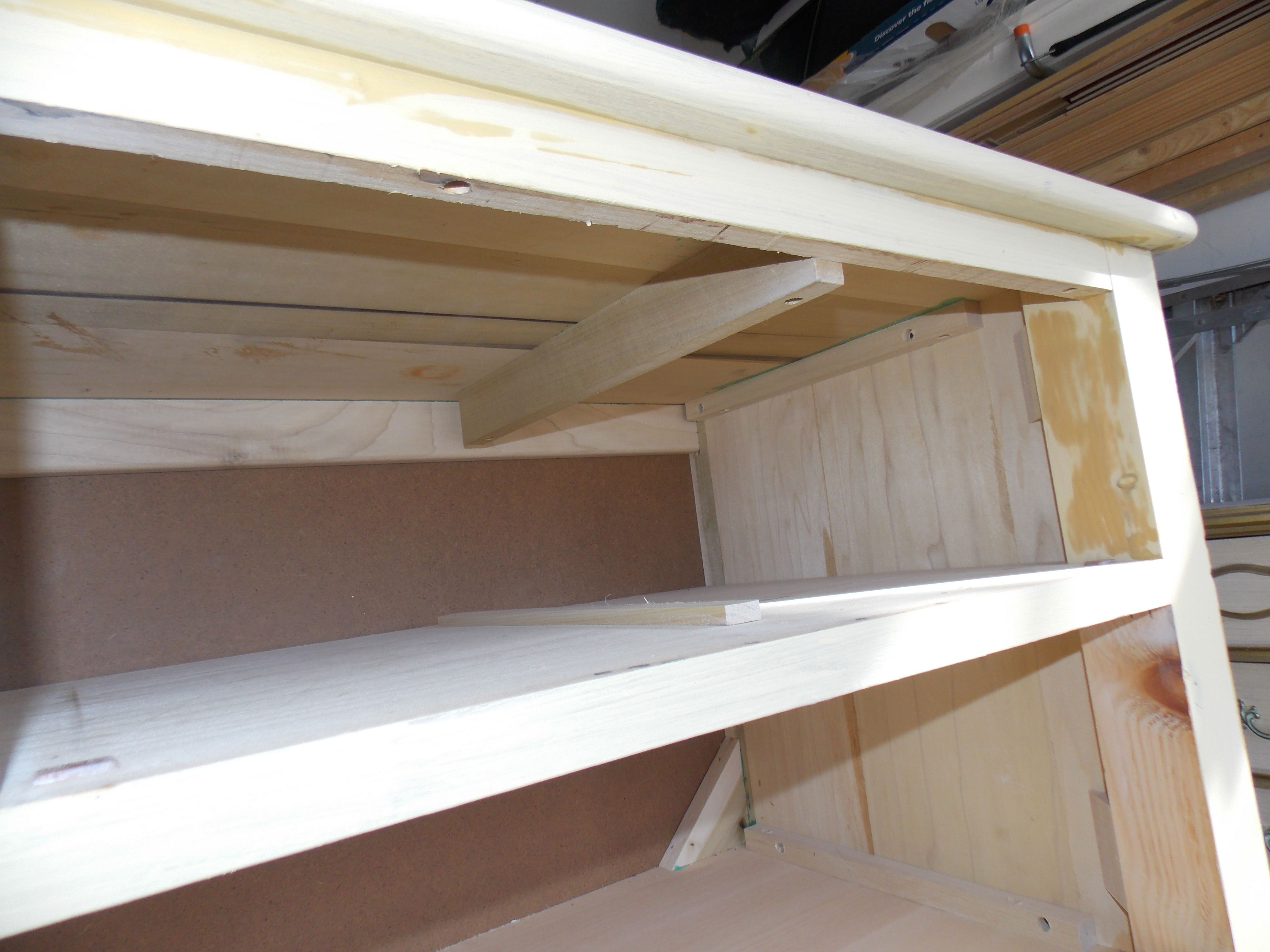 The inside was in need of a few alterations so I started by removing the drawer tracks..sort of difficult to do without making marks on the wood…