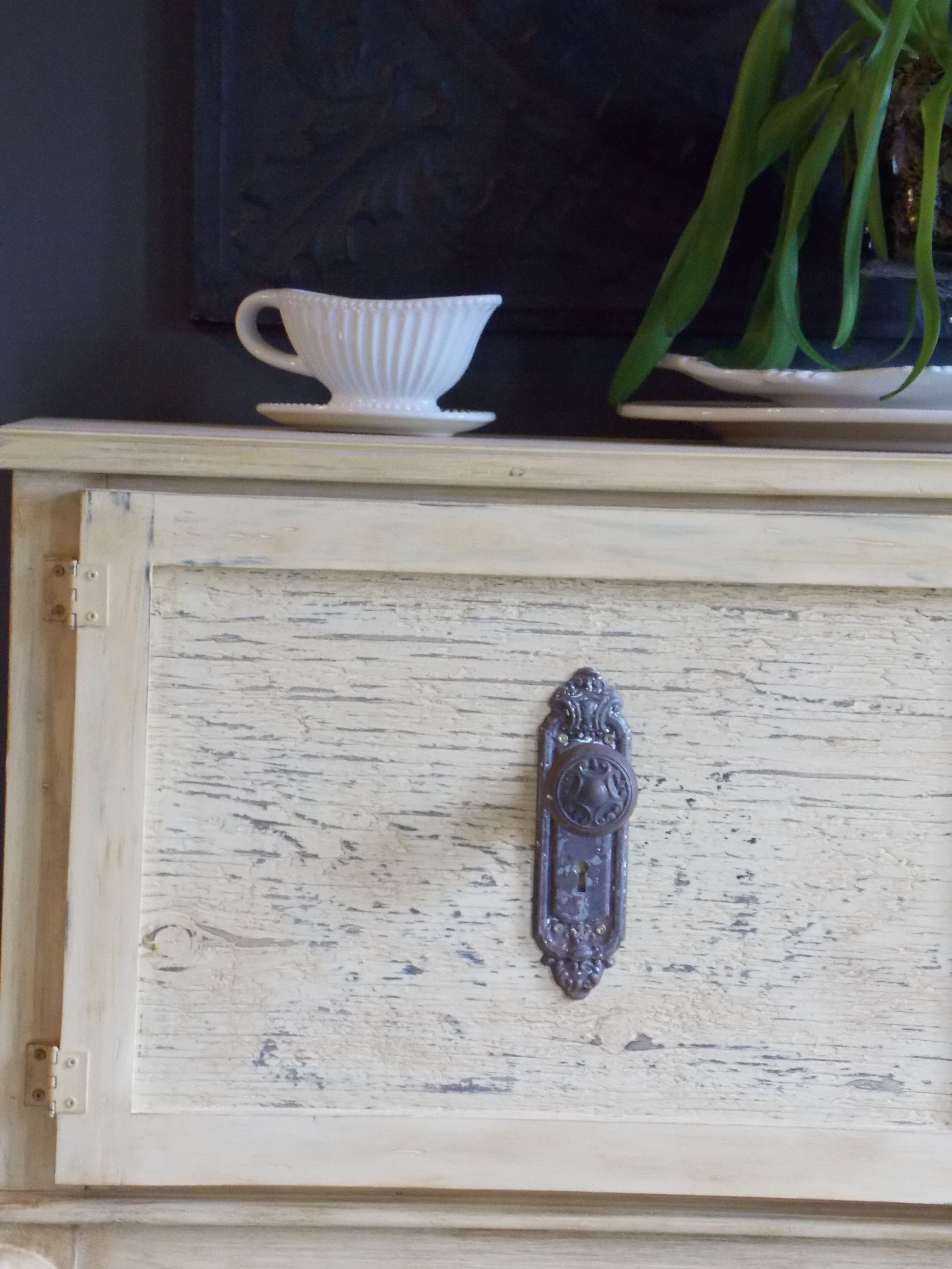 I am loving the color combination – it’s so soft and pretty. The 100 year old hardware is perfect with this piece. As per all of your furniture makeovers, this is stunning! I’m going to take note of the interior color for future reference.