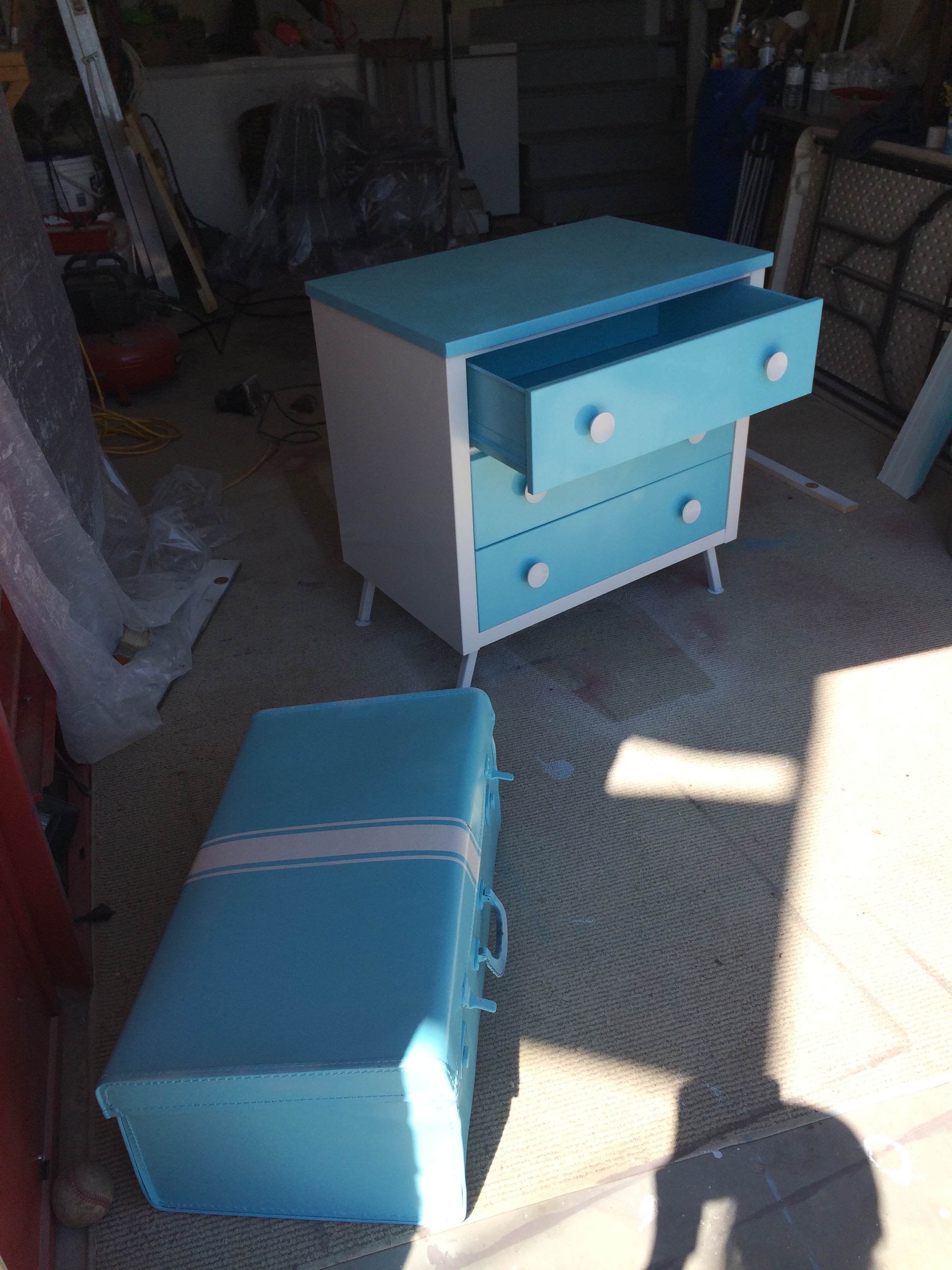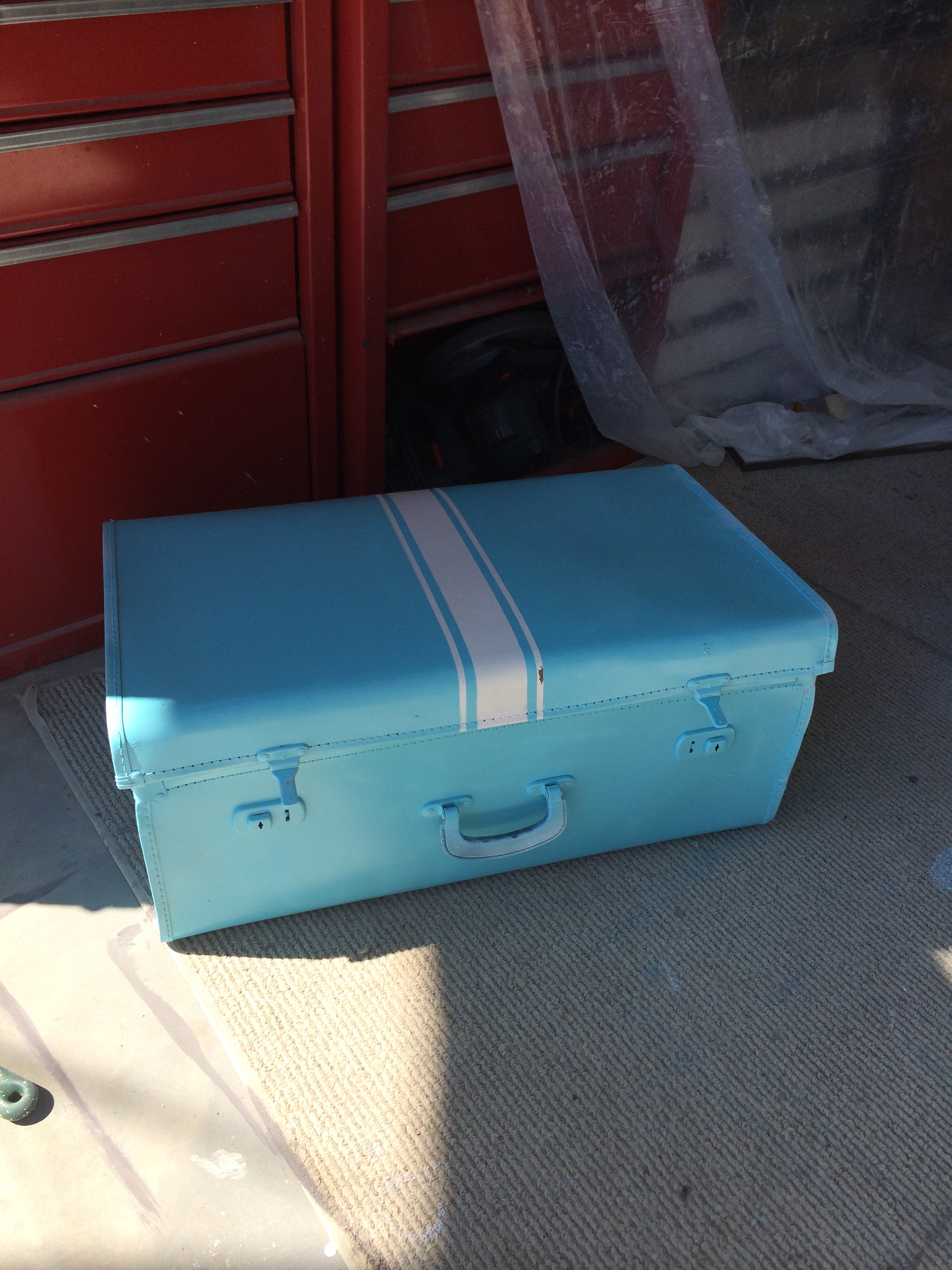 I thought I might paint up a vintage suitcase to match when I ran out of paint…the bottom is still white in this photo… Oh well, it would’ve been cute…