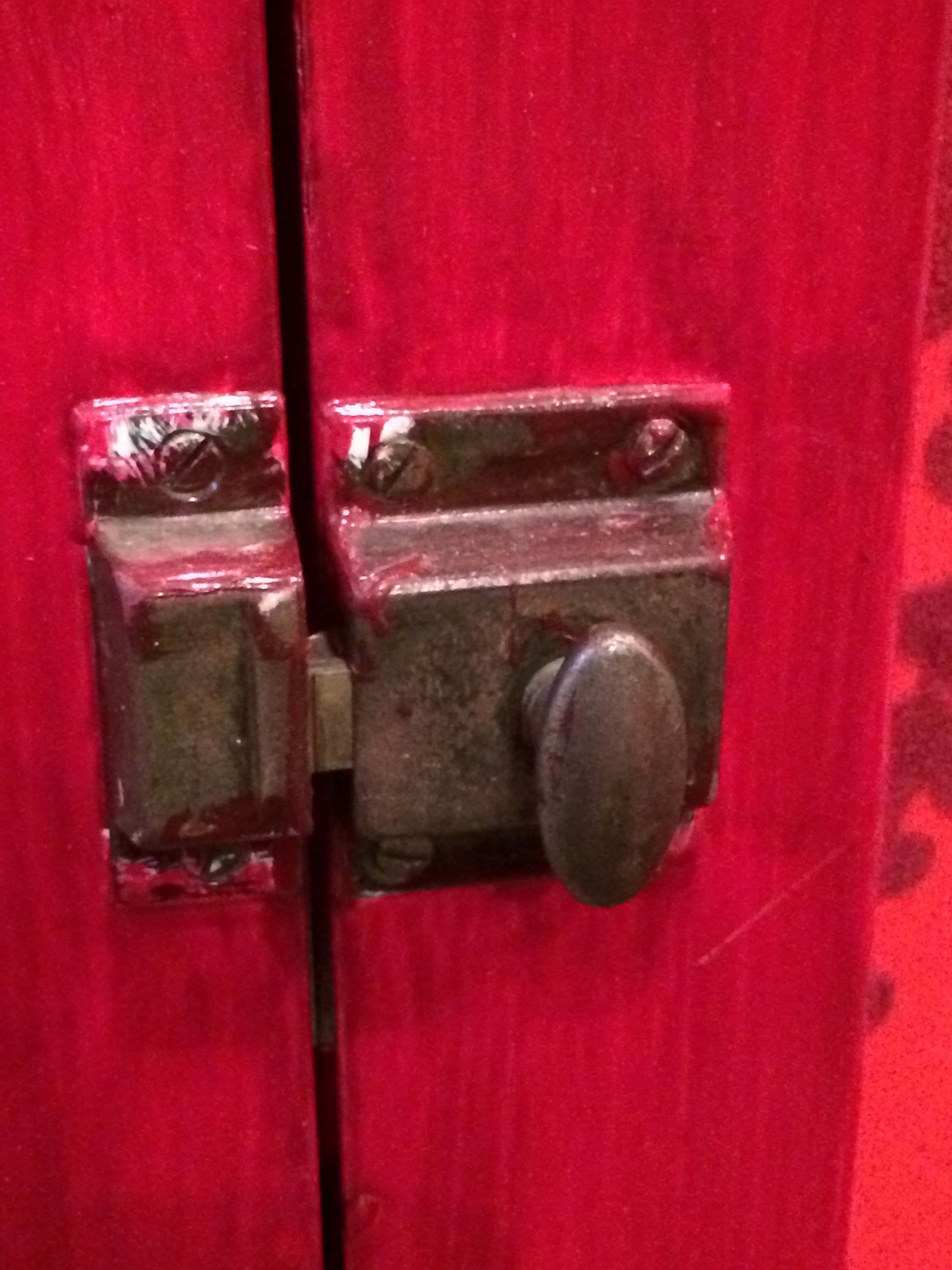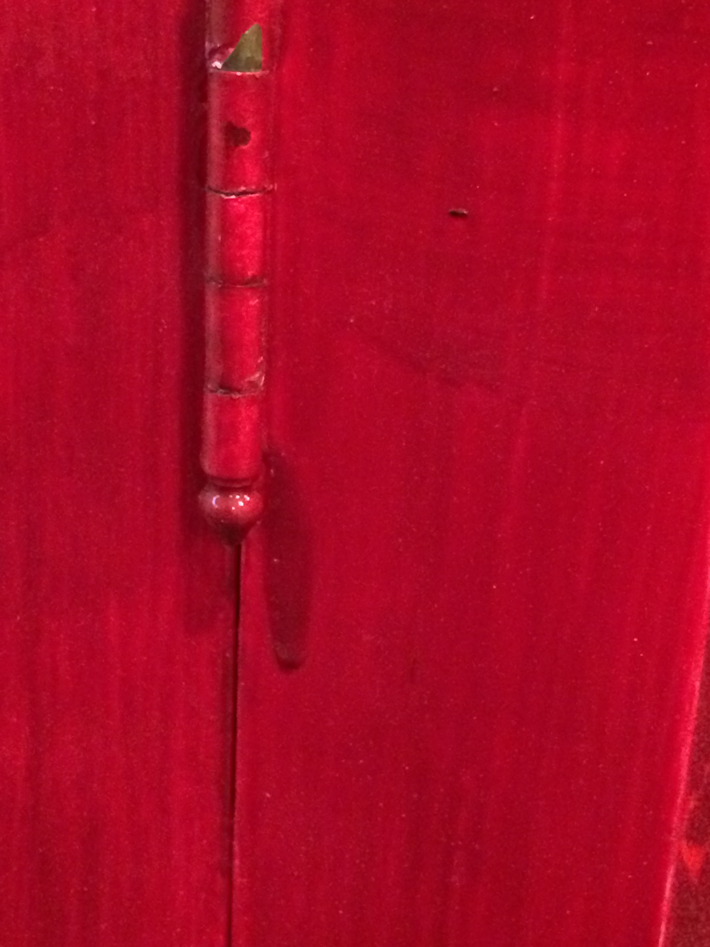 And lastly, this old cupboard/hutch was mistreated by someone who gave it an incredibly sloppy coat of red glaze…. ewweee! Drips! Bad paint job…really bad. It was doomed for the garbage by it’s owner who has asked me to do some custom pieces for her. She wanted it gone but I told her we could make it into something pretty again. Stay tuned for that incredible change!