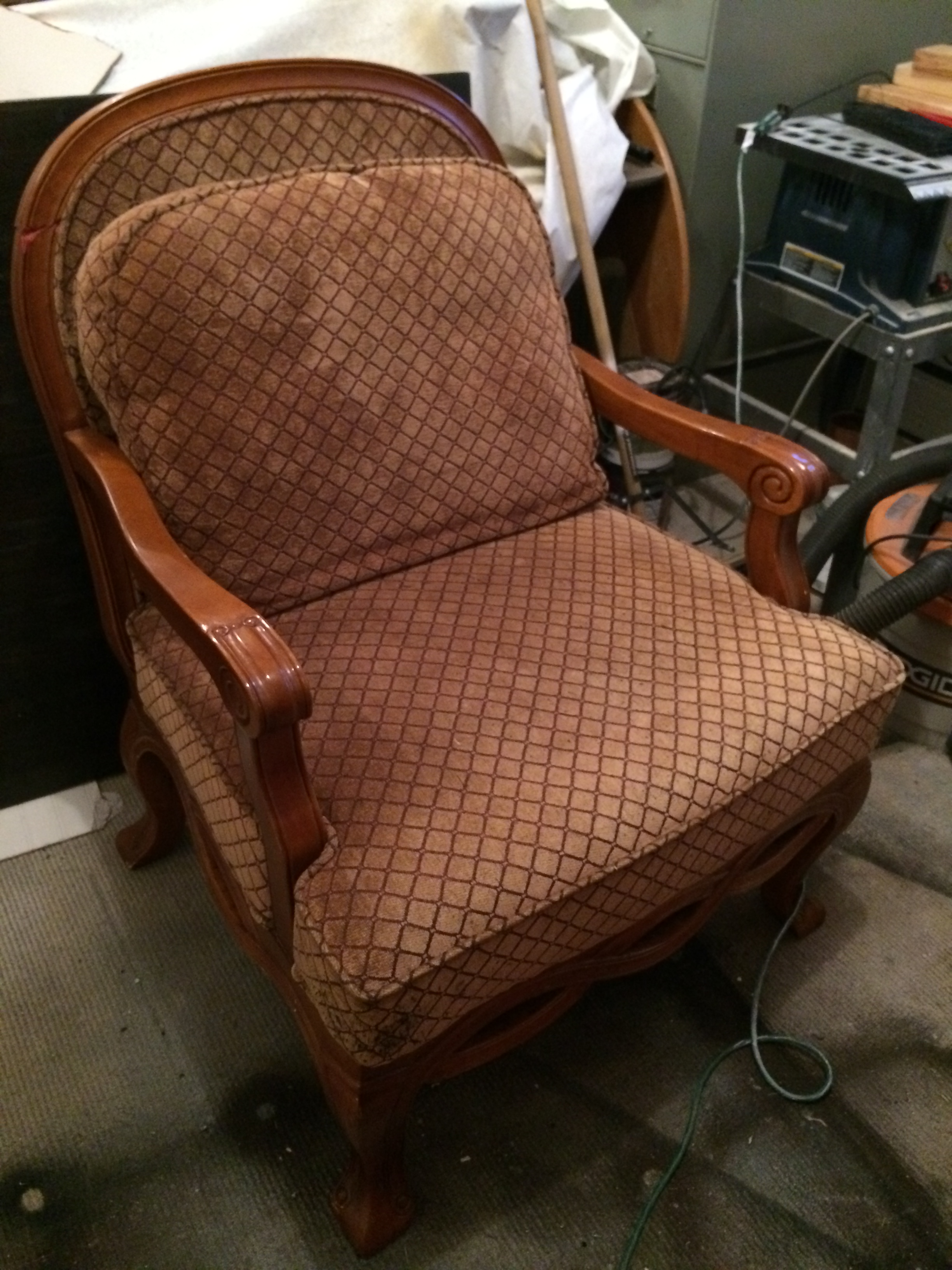 I picked up this chair today for a steal!… I had one exactly like it that I reupholstered in drop cloth…beautiful finish! I plan to do something different with this one…
