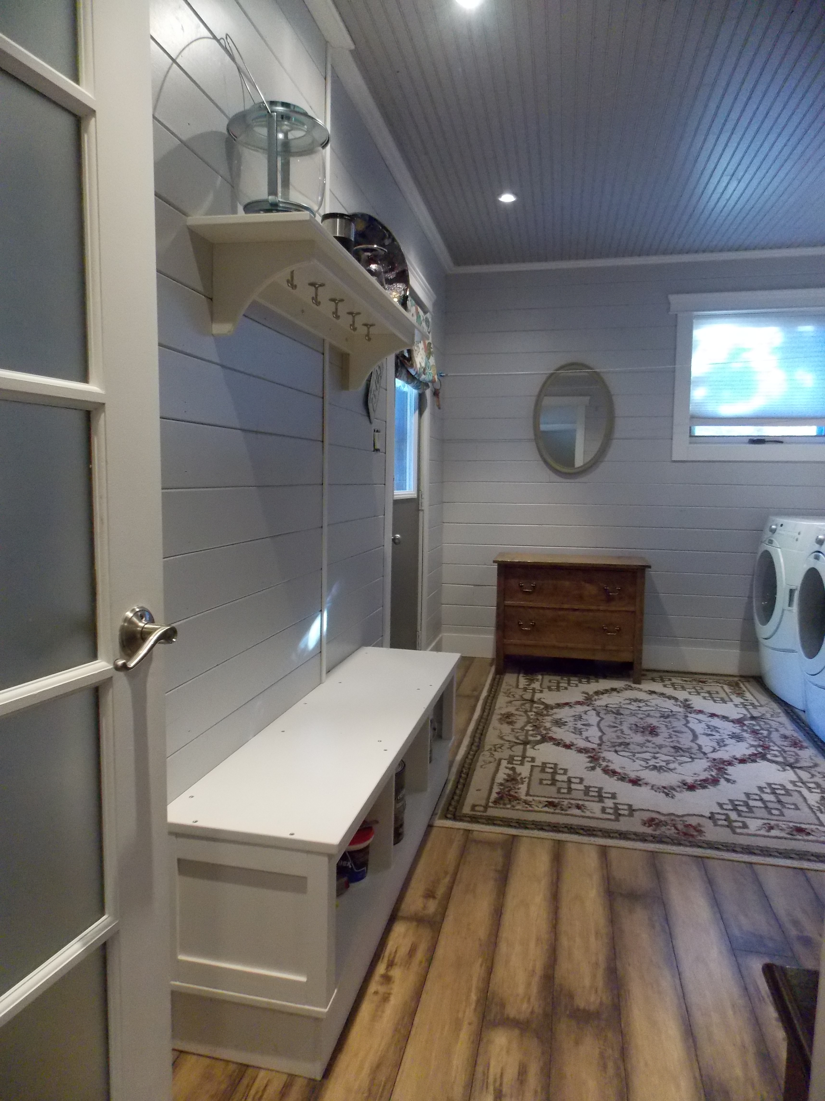 I love my roomy laundry room/mud room! (the back door is on the left as well as hooks for coats etc and a place to sit to put on/off your shoes)