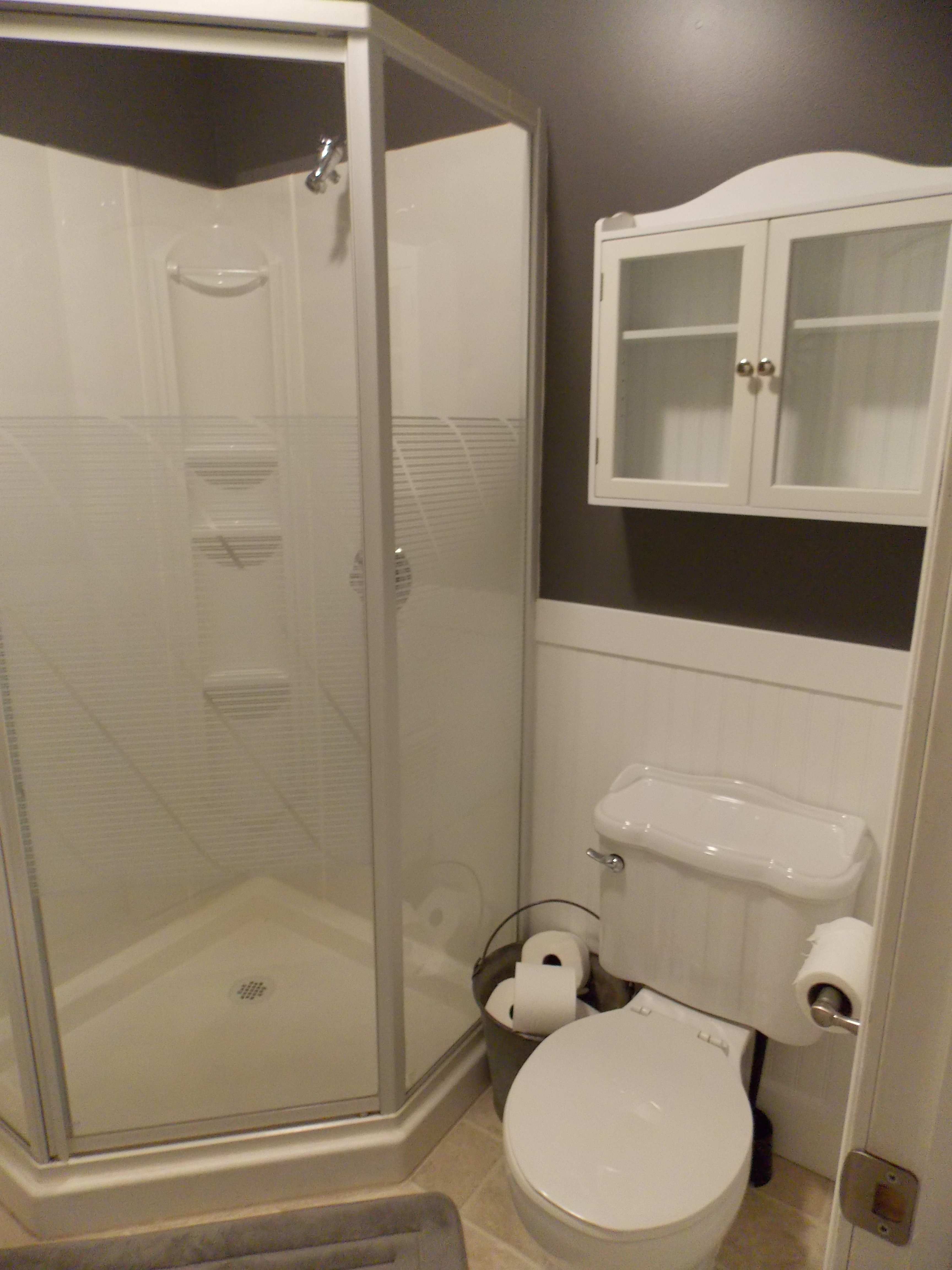 Next we move to the main floor bathroom… this room used to be a very bold red color. Not a dark red but an orange red. I do not have any before photos of it but I wish I did as it is as it is a very dramatic change. We painted and added the wainscotting … wow what a difference it has made! New and bright looking!