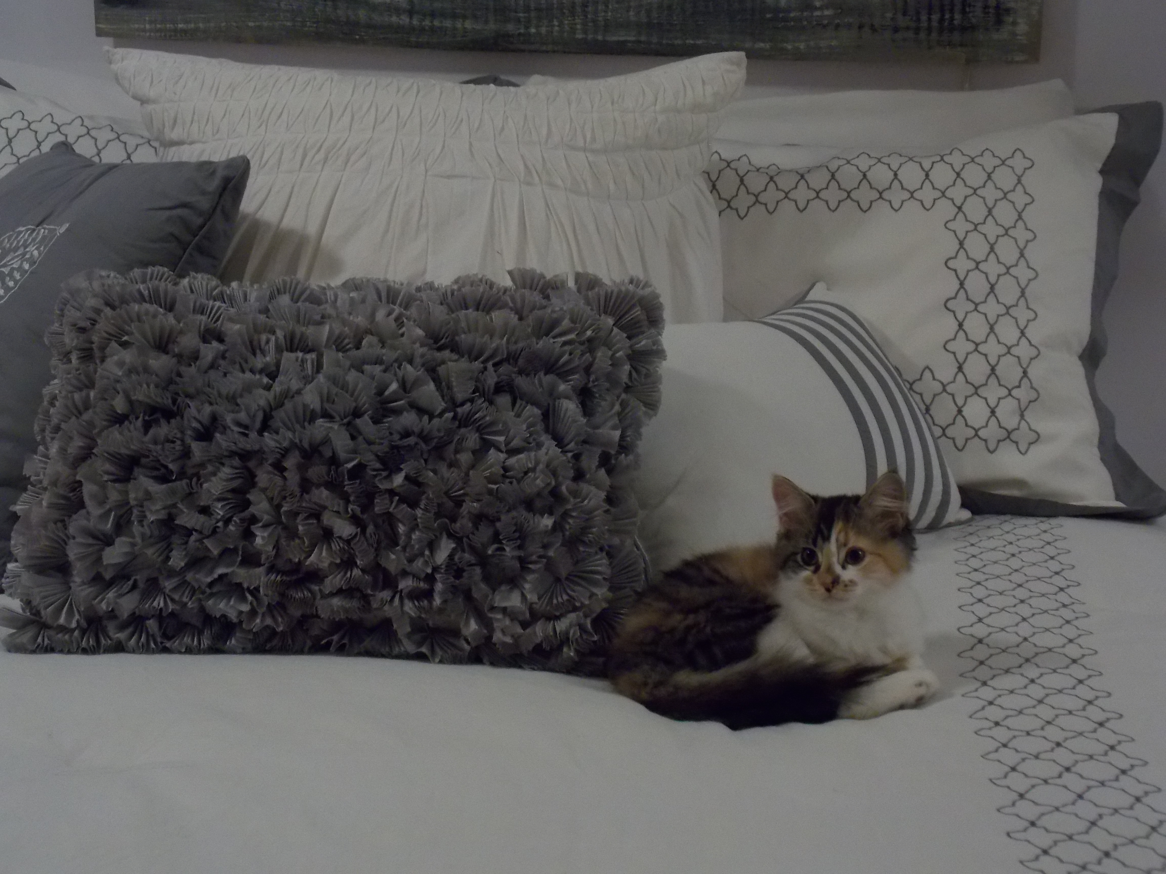 We started by giving her a new bedding set for Christmas.  She had been saying for quite some time that she’d like her room to be whites and greys…mostly white.