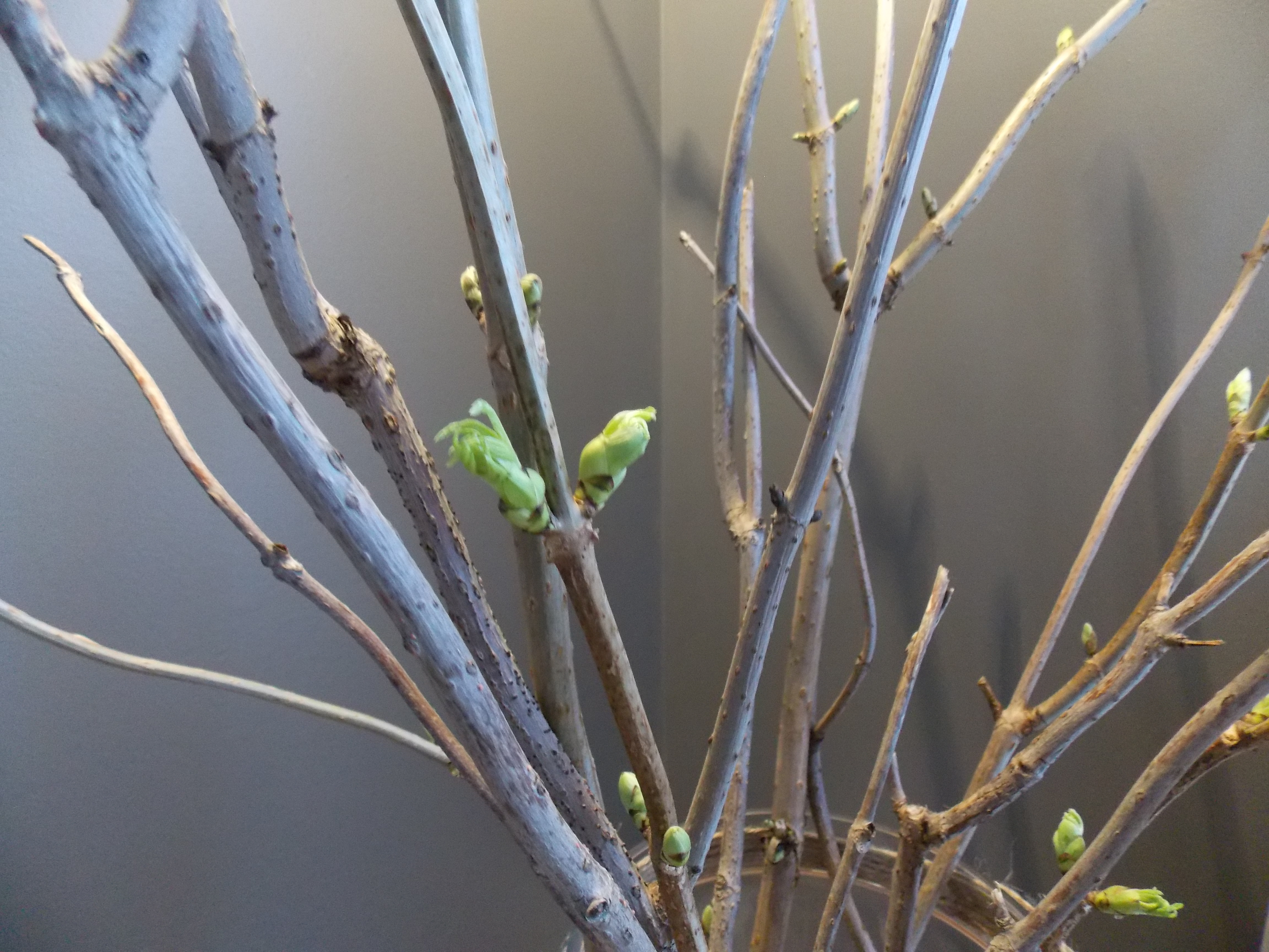 It has been such a long winter and I am excited to see a little green. I can’t wait until the whole bundle of branches is in full bloom with fresh green leaves.