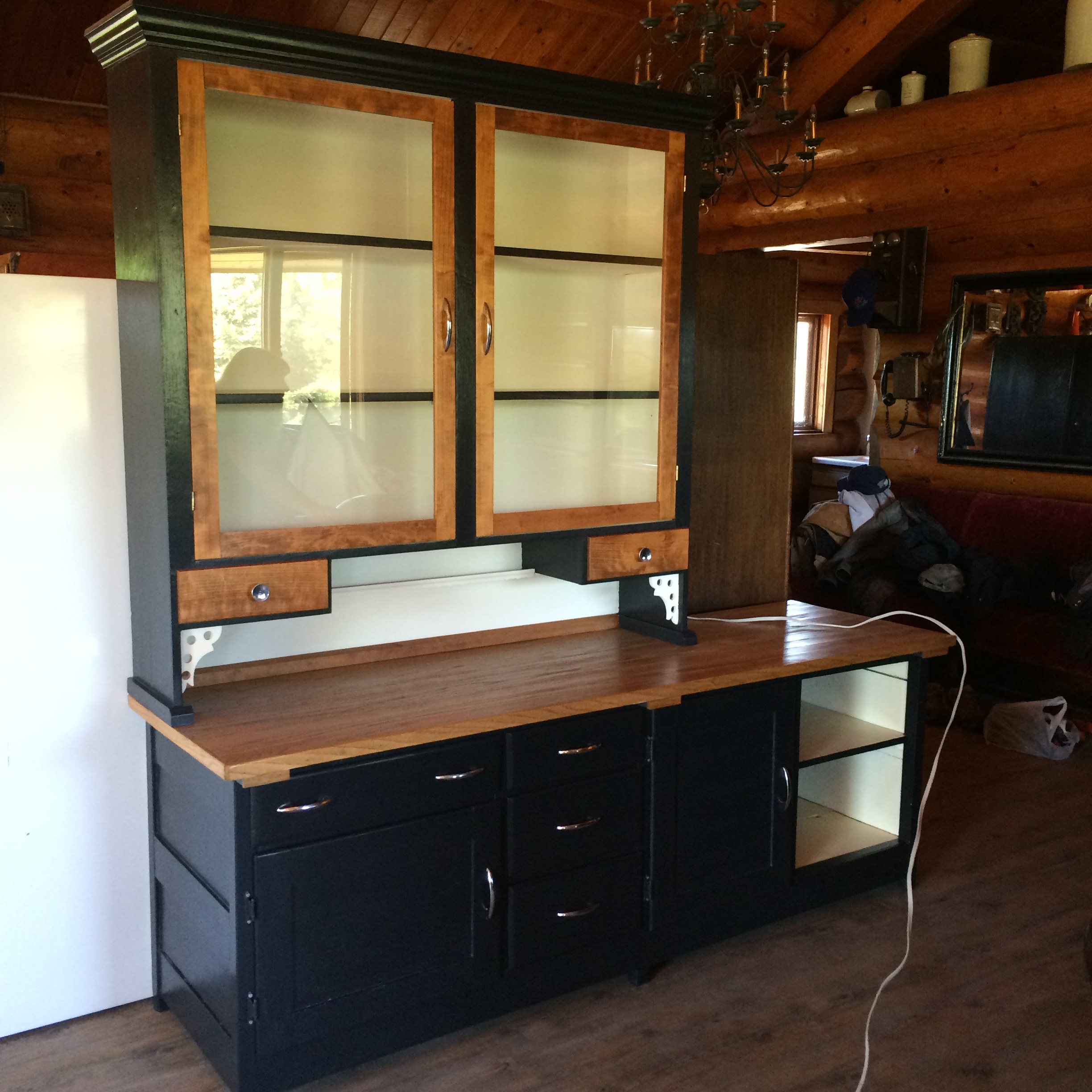 Finished in chalk paint and still considering new hardware for the doors and drawers. the current hardware doesn’t look bad at all but if the right ones come along I will certainly let the owner of the cabinet know.