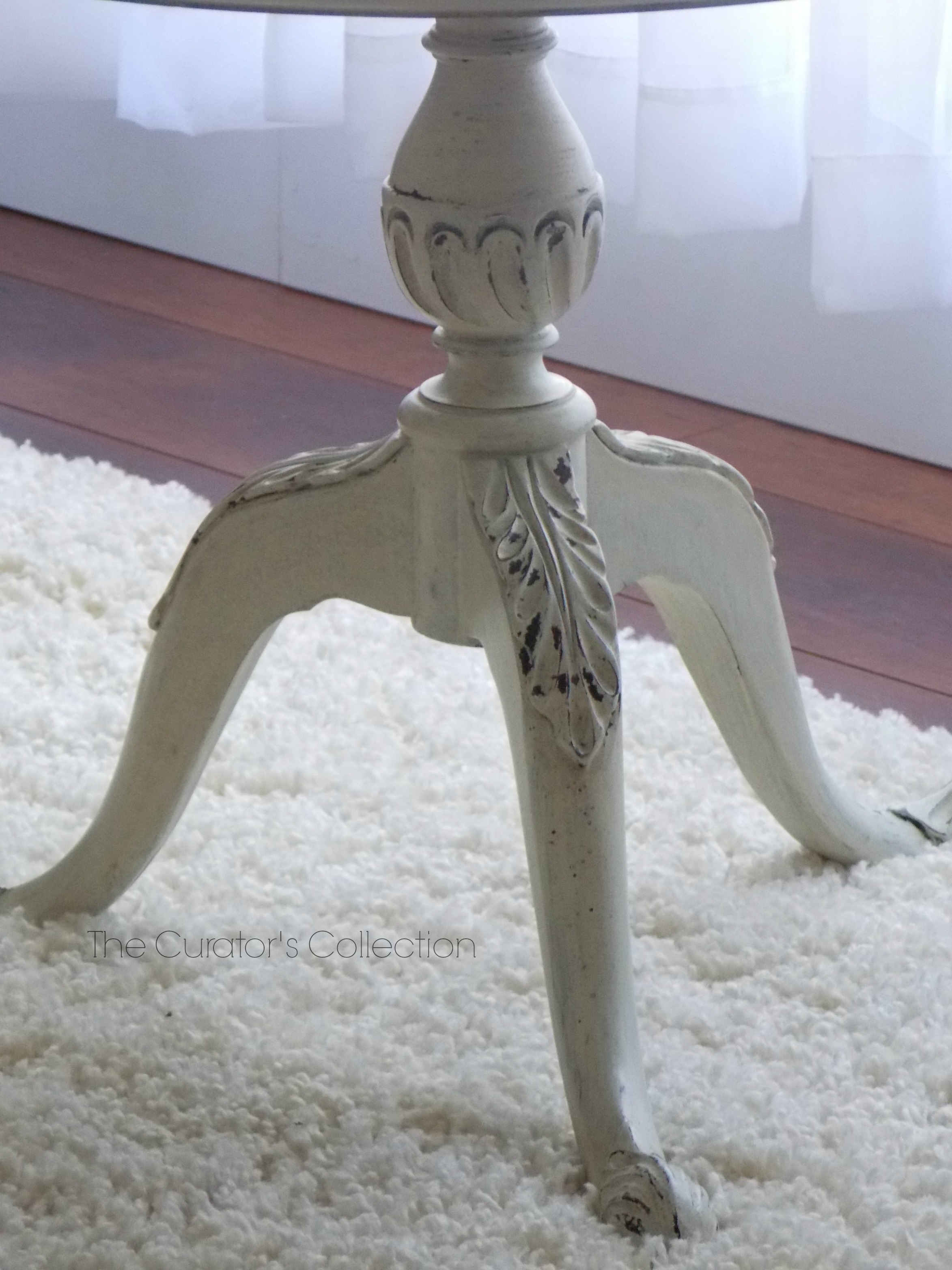 This 3 tiered (what I think may have been a plant stand at one time) display table was originally a dark finish.  It’s finish was flawless.  Very sturdy and pretty as it was, I was asked if I could please paint it and brighten it up so it could be used in the wedding as a dessert stand.  There will be many pastries, cupcakes and dainties for the reception placed on it.