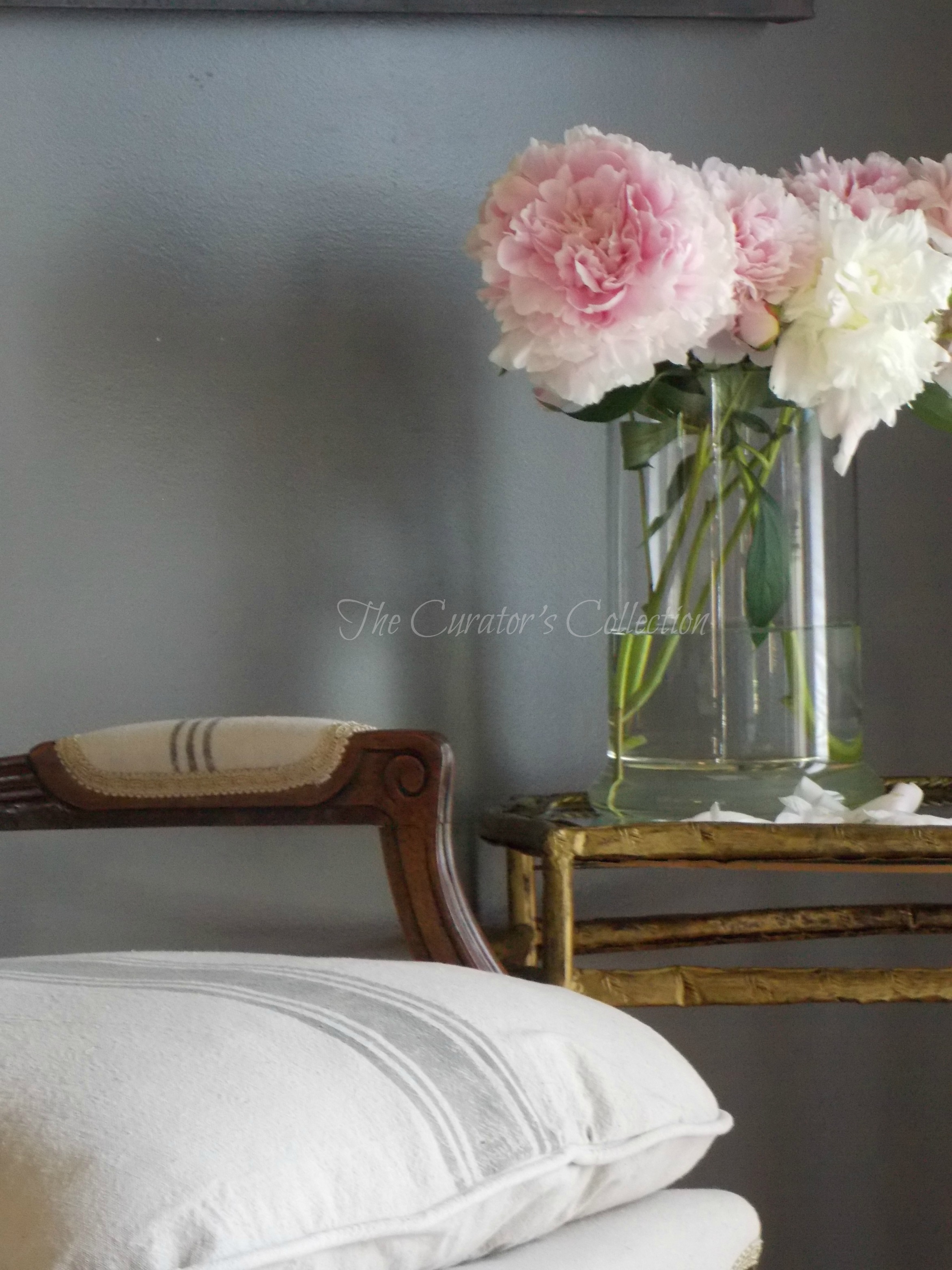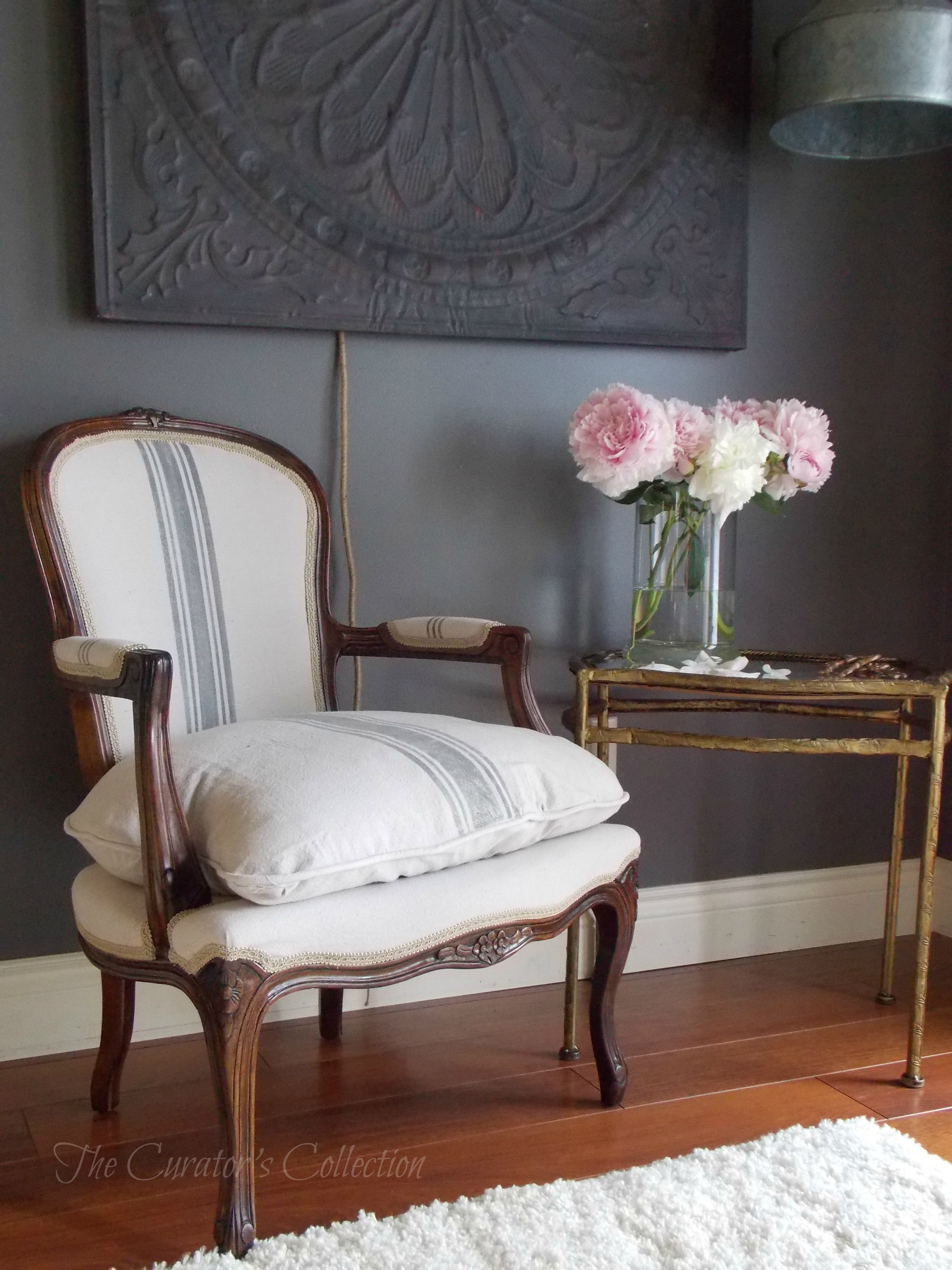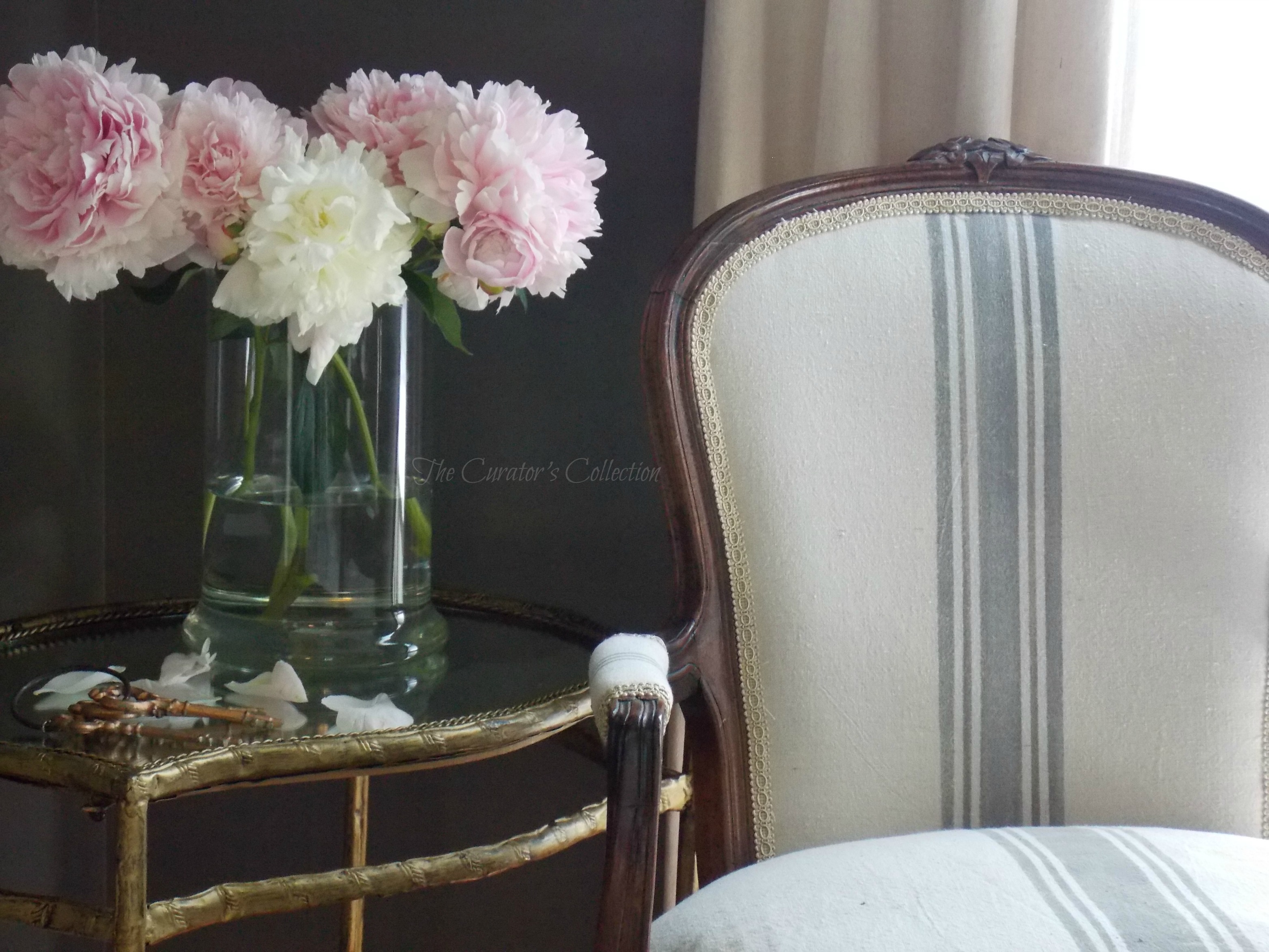 oh, I absolutely love this wonderful chair. I envy those who can upholster, you did a beautiful job. Love the chair, the gray walls, the table, the Peonies…love it all! thanks for joining in on Share Your Style!