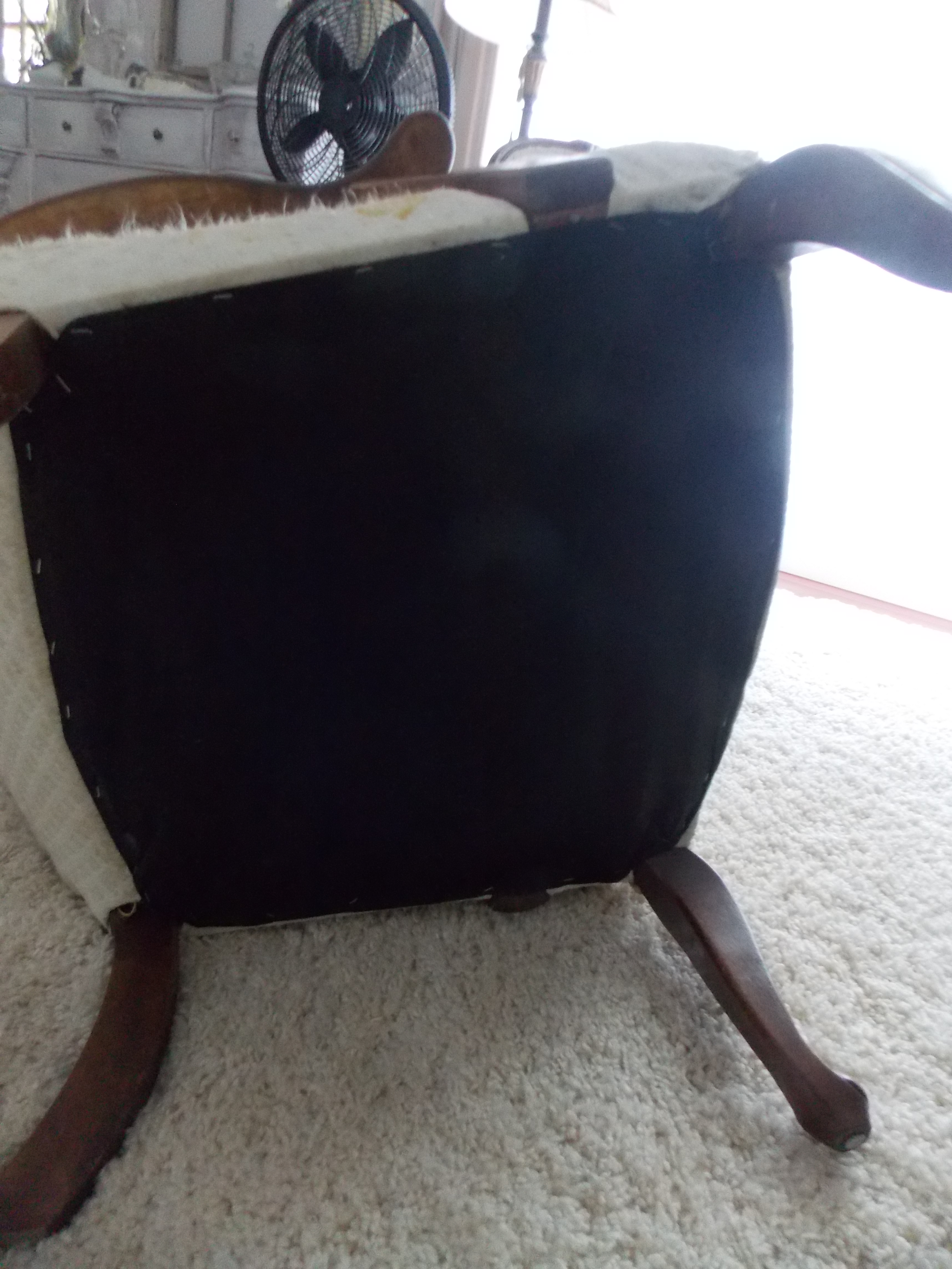 This is the bottom view of the chair before I removed the cover and the back after I removed the fabric.