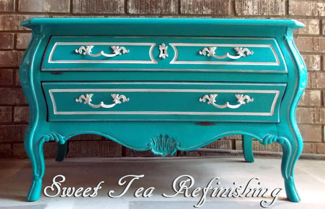 Thea from Sweet Tea Refinishing shared this painted Bombay Chest using General Finishes Paint. I love the colors she chose for it as well as the sweet details she added inside and out! I have not tried out this brand of paint yet but have heard many good things about it that make me want to give it a try. Well done!