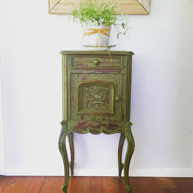 D.D.’s Cottage and Design made the right choice when she made over this sweet table with Boxwood Green Milk Paint. I love chippy patina so this curvy little chippy table made my heart sing when I saw it! Love, love, love it!