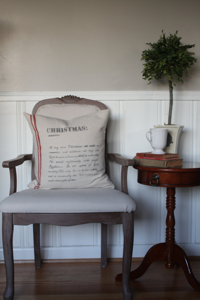 Vanessa from Vanessa’s Modern Vintage Home shared her pretty homemade throw pillows! The whole vignette caught my eye … the chair, the pillow … that little table ! Hmmmmm … Soothing isn’t it! Well done Vanessa! You should really go check out the whole post and see all the great photos of her work!