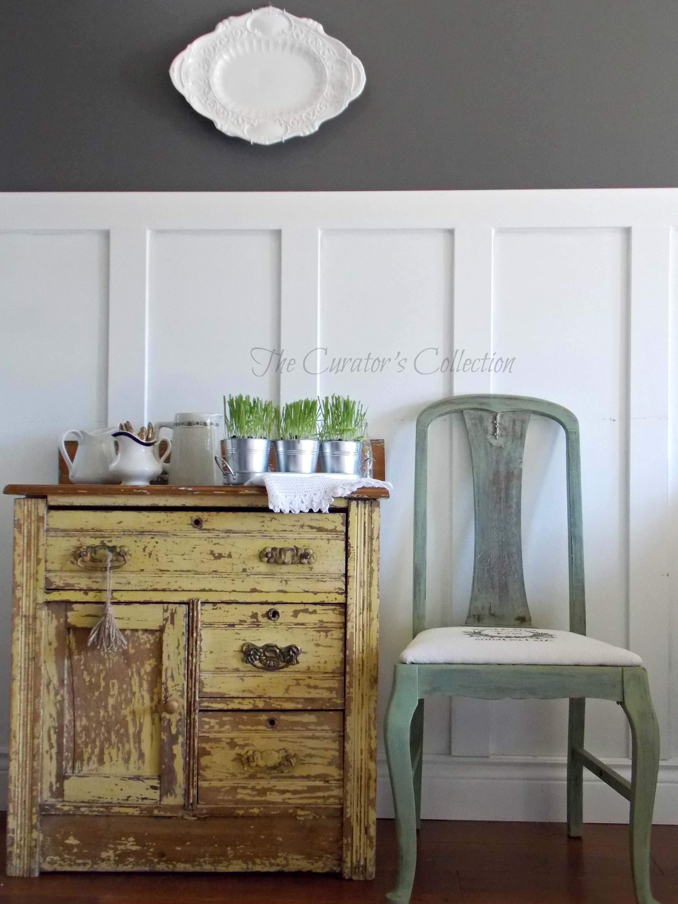 I love the color you chose for the chair, but that yellow cabinet takes my breath! *swoon*