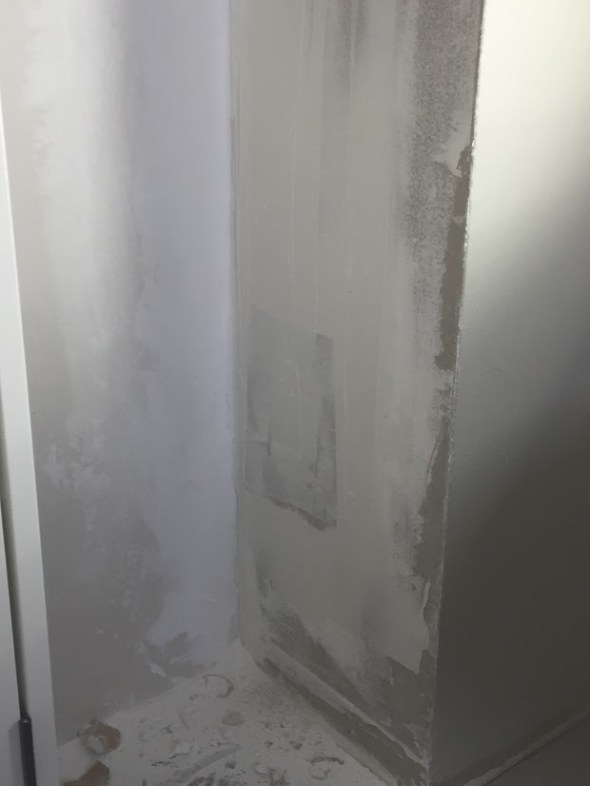 I was a little grumpy at the sight of it to say the least and this hole was holding up my progress. Time to take and do the job myself. All the mud that the fellow had applied was just seeping into the hole on the other side.