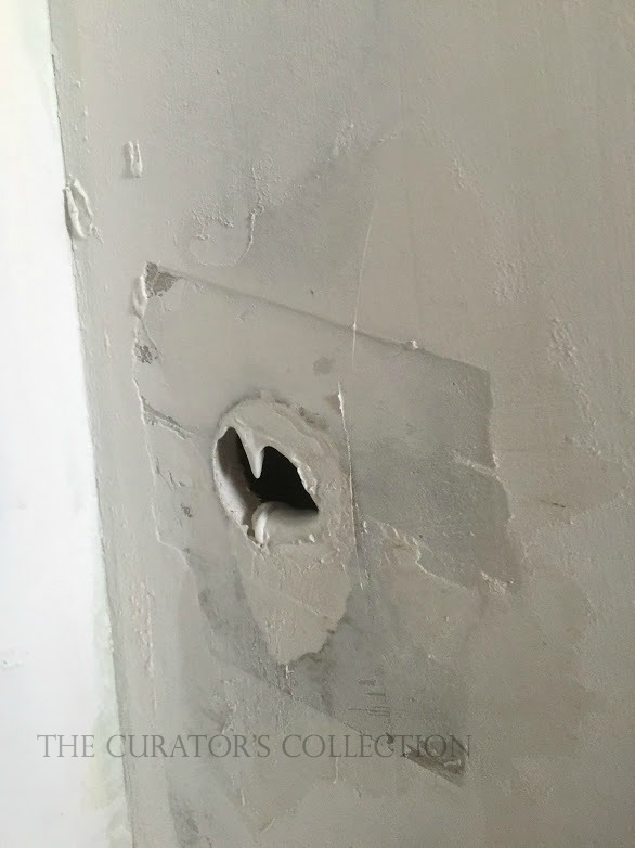 Recently I was privileged to be part of the renovating of a large townhouse. I was painting in the newly constructed 1/2 bath on the main floor. Because it was newly constructed, existing pipes etc. had to be moved and holes were left in the drywall.